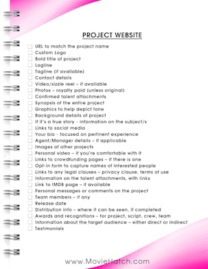 We're in a creative field which means we have a strong right brain (rules creativity). It also means that organization can fly out the window. These lists guide you in the right direction and remind you what needs to be done for pitching your project.